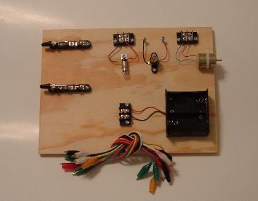 If you have ever tried to explain electrical circuits, then you'll understand this next project. It can be difficult to explain electrical concepts. The E-board helps. This was designed to allow students to assemble and test simple circuits right on the table. Low voltage components make this a safe way to learn. Students and teachers agree, hands-on is the way to go.